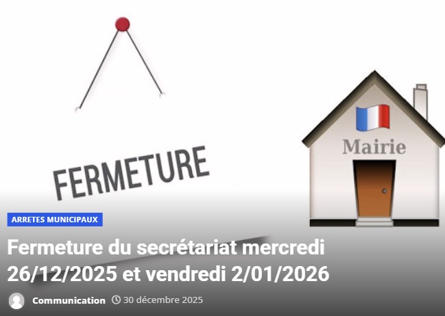 Fermeture du secrétariat mercredi 26/12/2025 et vendredi 2/01/2026