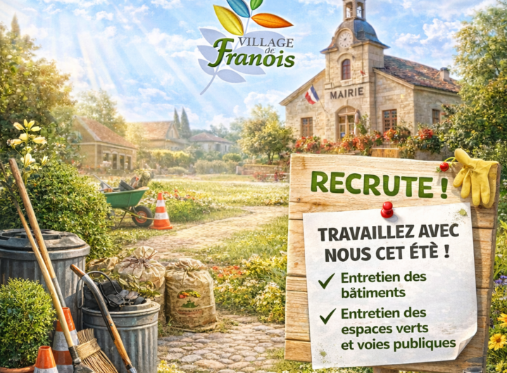 La commune de Franois recrute un adjoint technique Dans le cadre d’un servie public de proximitĂ© et...